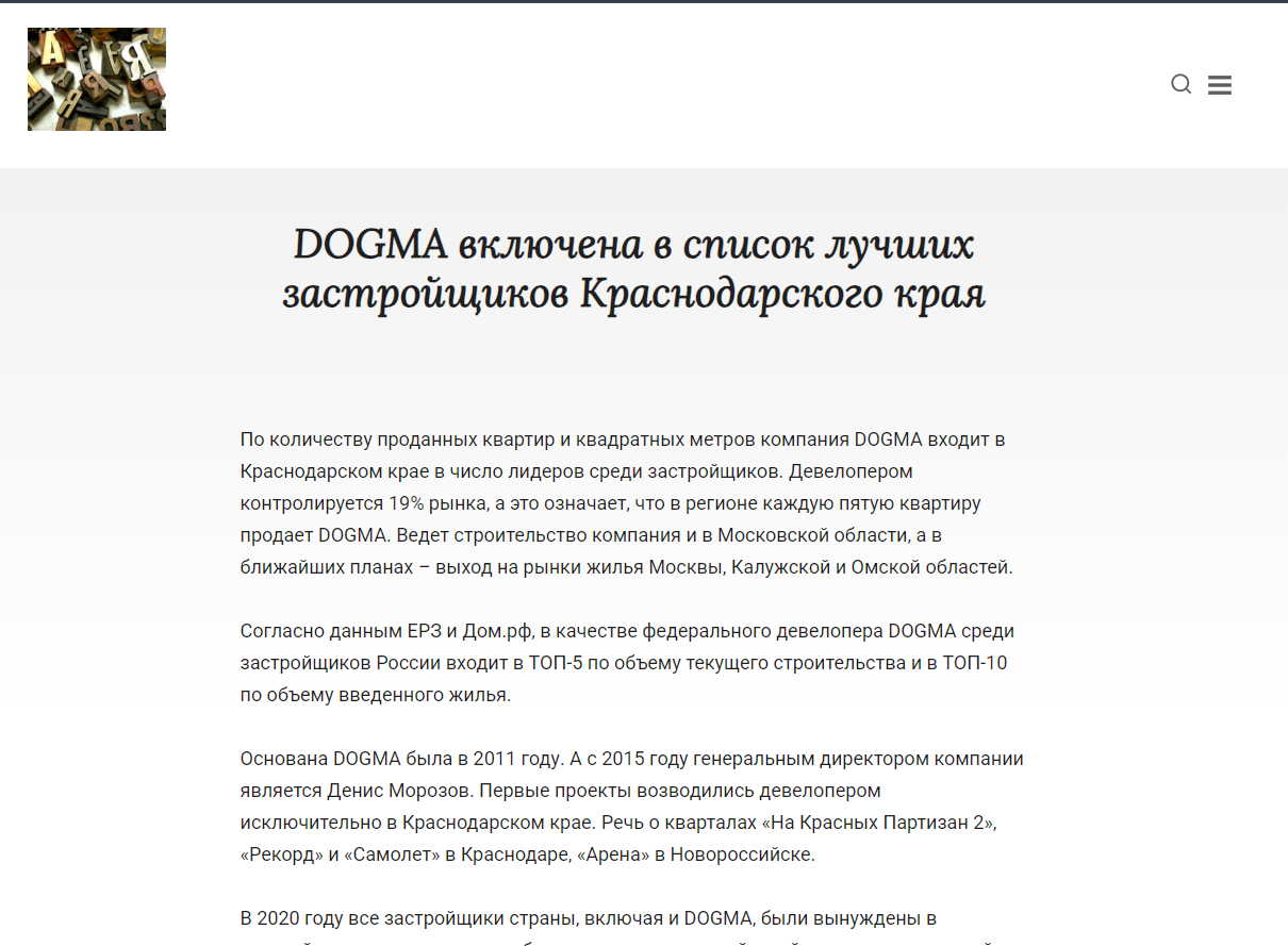 Источник: https://press-for-life.ru/dogma-vklyuchena-v-spisok-luchshih-zastrojshhikov-krasnodarskogo-kraya