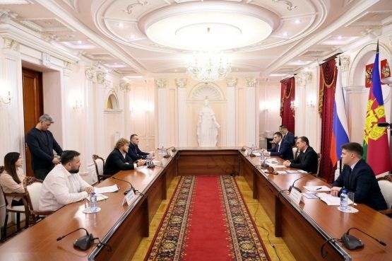 Вениамин Кондратьев встретился с руководством ГК «Догма» Артемом Колесниковым и Денисом Морозовым. В мероприятии участвовали вице-губернатор Сергей Власов и министр промышленной политики края Дмитрий Хмелько.