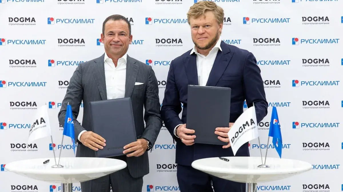 Федеральная компания DOGMA и торгово-производственный холдинг «Русклимат» подписали соглашение о стратегическом партнерстве. Документ предусматривает комплексное оснащение системами отопления, кондиционирования и вентиляции производства «Русклимата» жилых проектов застройщика в пяти регионах России. Соглашение подписали президент DOGMA Денис Морозов и председатель совета директоров холдинга «Русклимат» Михаил Тимошенко.